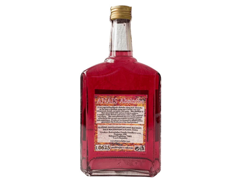Speciální ručně vyráběný absint, jehož základem je destilát Kyle Absinthe, připravovaný pouze ze čtyř pečlivě vybraných bylin – v Jeseníkách vypěstovaného vlastního pelyňku, fenyklu, koriandru a anýzu. Tento destilát následně prochází druhou macerací s ovocem, díky které získává komplexní ovocnou chuť, výrazné aroma a 100% přírodní červenou barvu. Jde o netradiční přístup k výrobě absintu – místo klasické druhé macerace s bylinami používají ovoce, čímž vzniká zcela jedinečný chuťový profil spojující tradiční absintový charakter s jemnou ovocnou svěžestí.